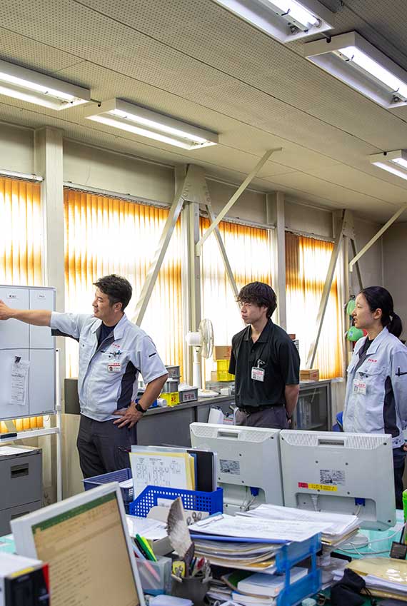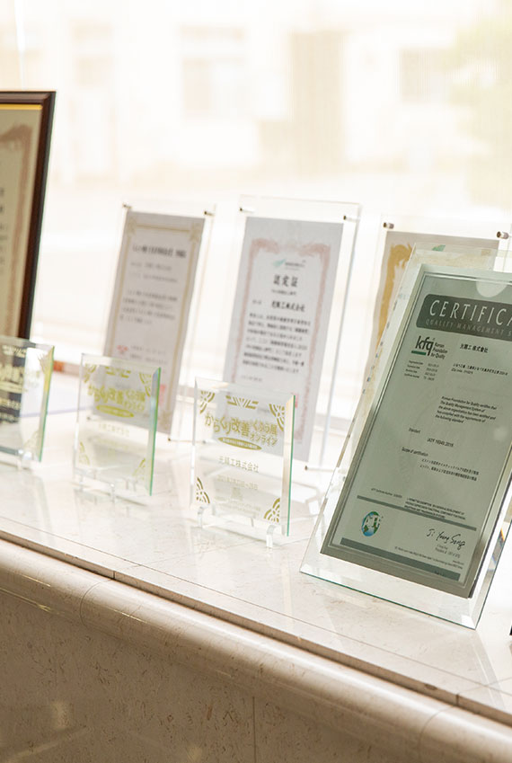 弊社は自動車産業を主とした数多くの部品を創業以来永きにわたり供給し続け、現在、多くのお客様から信頼をいただいております。さらなる信頼を獲得するために、モノづくりの基本精神である「品質至上」を今⼀度、全社員が強く認識するとともに、世界を取り巻くグローバル化の流れに遅れないよう対処しております。
